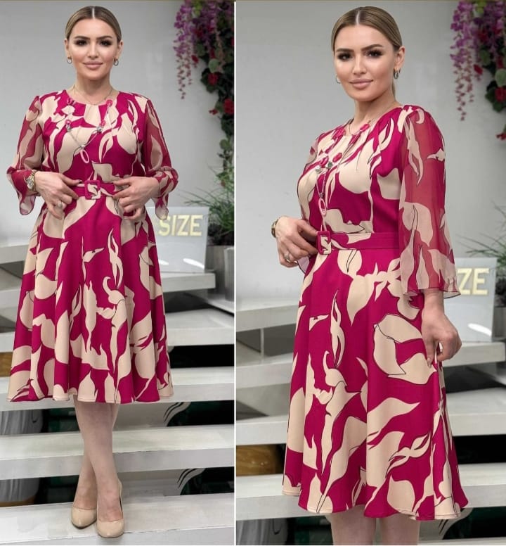 Add a burst of vibrant elegance to your collection with this authentic Turkey Wear Empire chiffon midi dress. Featuring a striking magenta and cream leaf pattern, this dress is expertly tailored in Turkey to offer a sophisticated fit for the modern professional in Kenya.