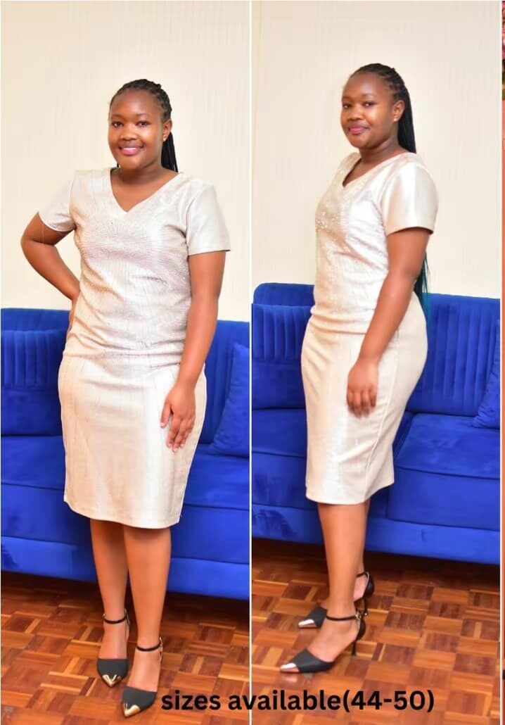 Step into sophistication with the latest arrival at Turkey Wear Empire. This silver textured sheath dress is the ultimate choice for the executive woman in Kenya who values a polished, understated elegance. Crafted with precision in Turkey, this dress offers a flawless fit that transitions seamlessly from boardroom meetings to formal evening events.